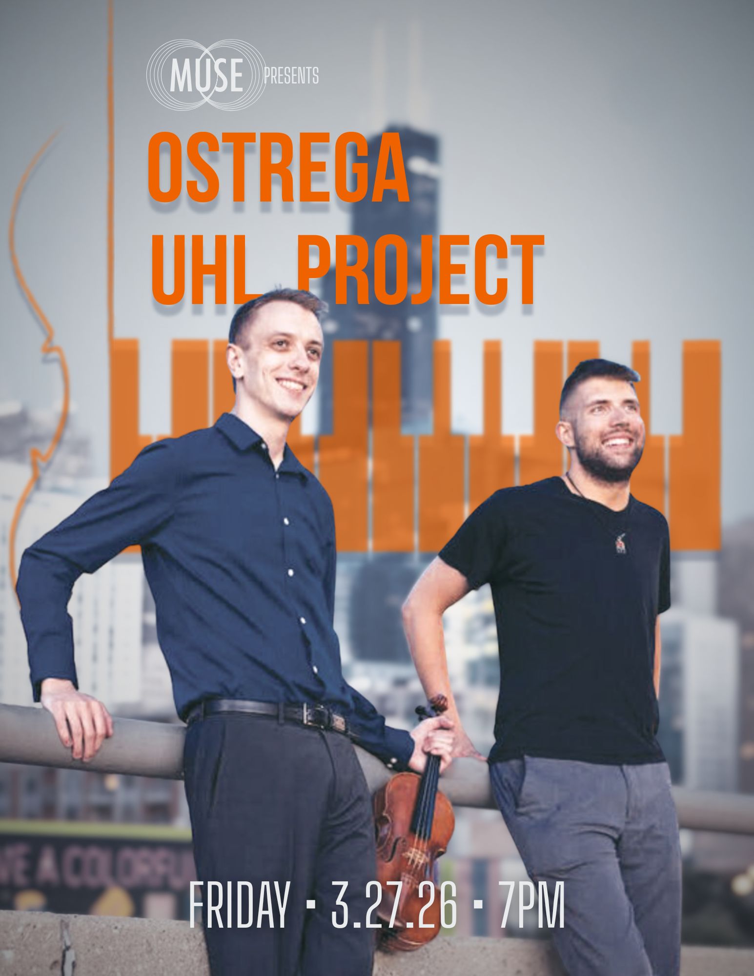 The Ostrega Uhl Project returns to MUSE! In the fall of 2024, violinist Brian Ostrega and pianist Stephen Uhl (along with cellist Brian Gaona) performed a stunning concert that featured the works of living Latin American composers. This concert will combine the old and the new, featuring the works of three living composers—Joshua Rodriguez, David Gerhard Utzinger, and Richard Scofano—as well as two of Beethoven’s works for violin and paino.